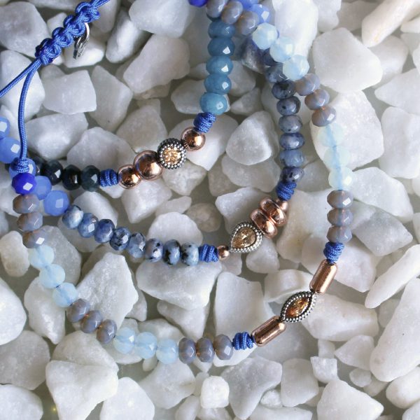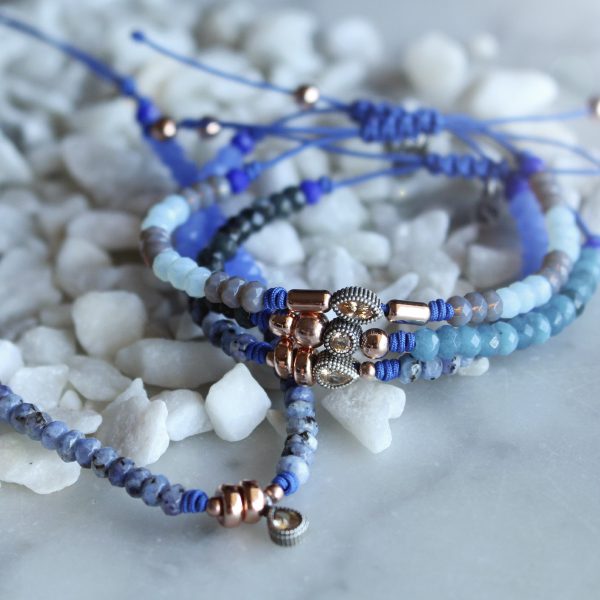 Pulsera de plata de ley 925 con ágatas, circonitas, cuentas de cristal y nylon.