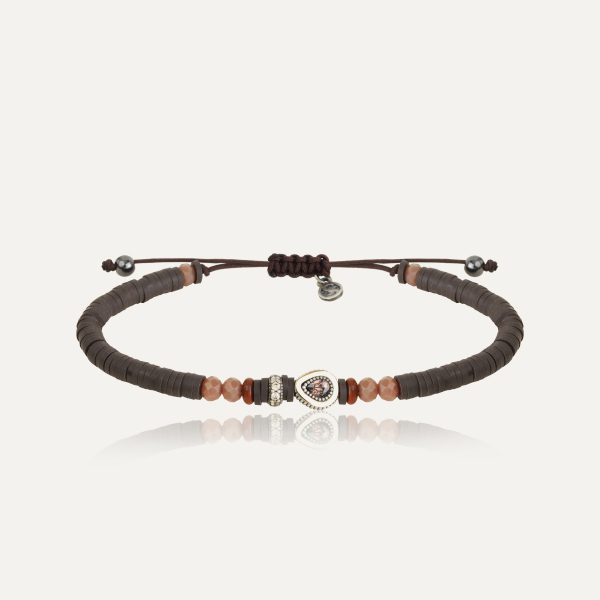 Pulsera de plata de ley 925 con oro de 9 kt, jaspe rojo, cuentas de cristal, hematites, caucho y nylon.
