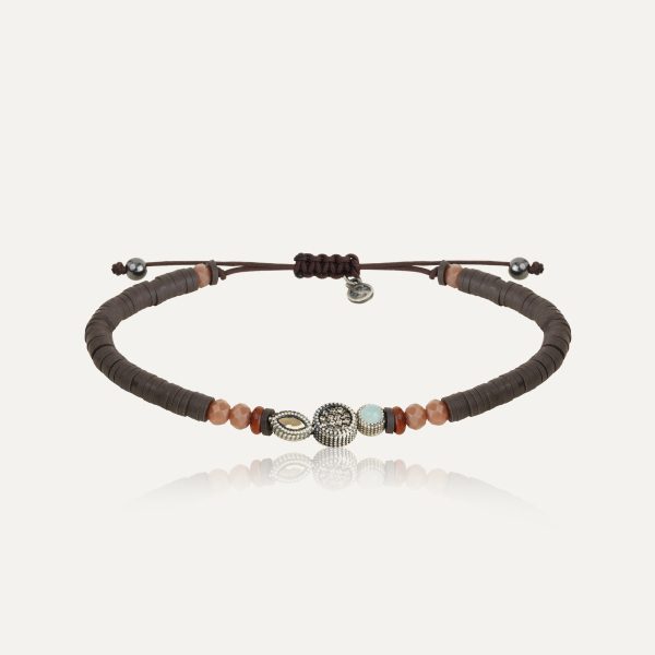Pulsera de plata de ley 925 con acabado envejecido, calcedonia y circonitas.