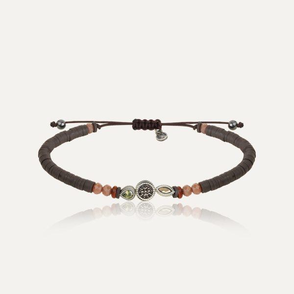 Pulsera de plata de ley 925 con oro de 9 kt, calcedonia, jaspe rojo, cuentas de cristal, hematites, caucho y nylon.