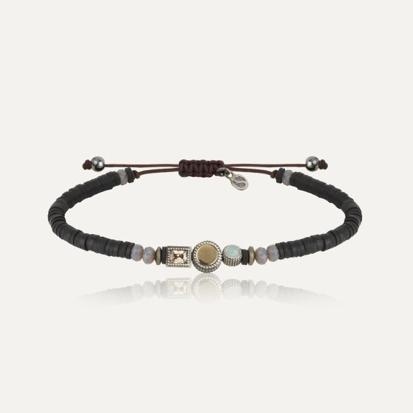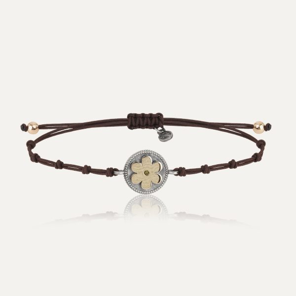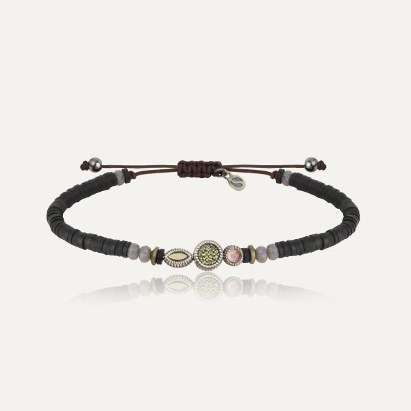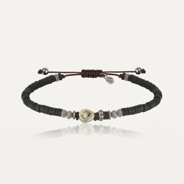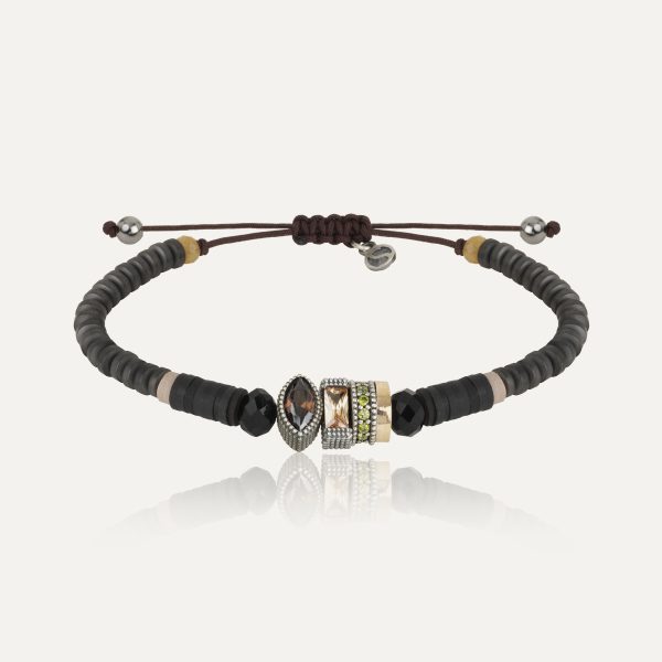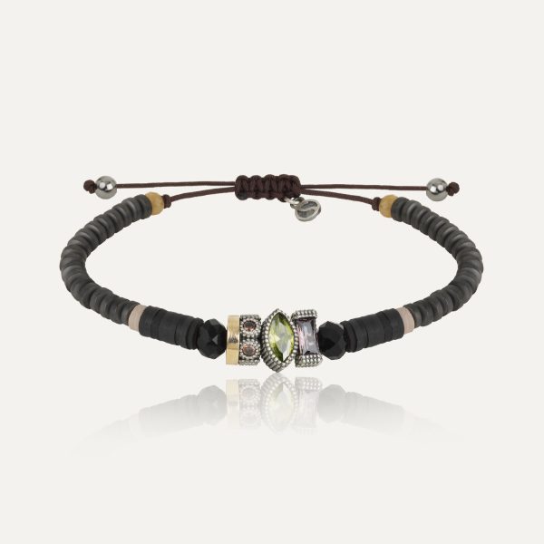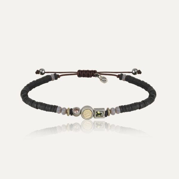 Pulsera de plata de ley 925 con acabado envejecido, oro de 9 kt, circonitas y nylon.
