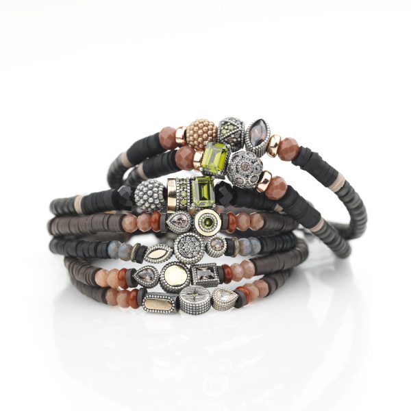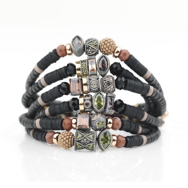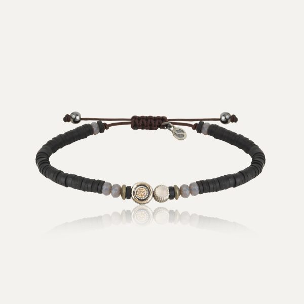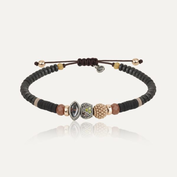 Pulsera de plata de ley 925 con oro de 9 kt, cuentas de cristal, hematites, caucho y nylon.
