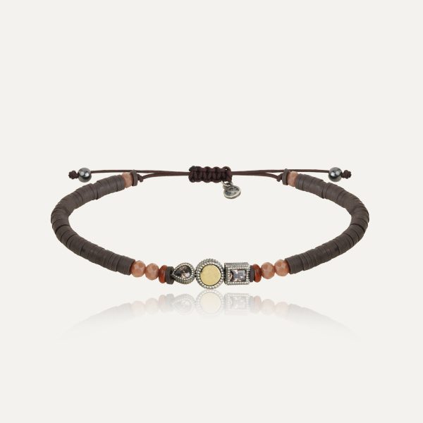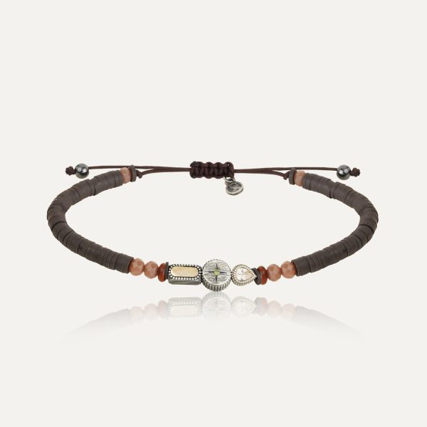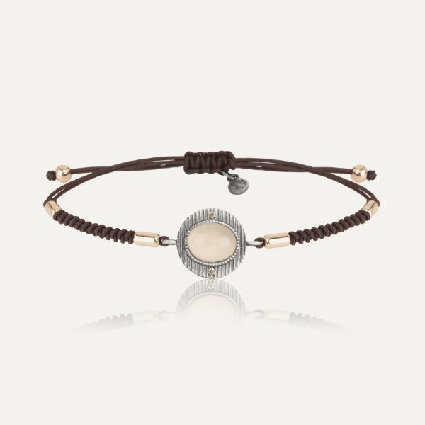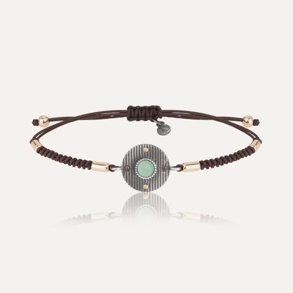 Pulsera de plata de ley 925 con acabado envejecido, calcedonia, circonitas y nylon.