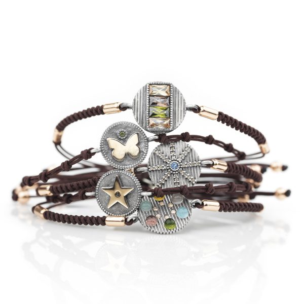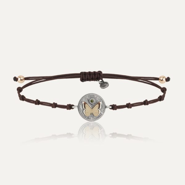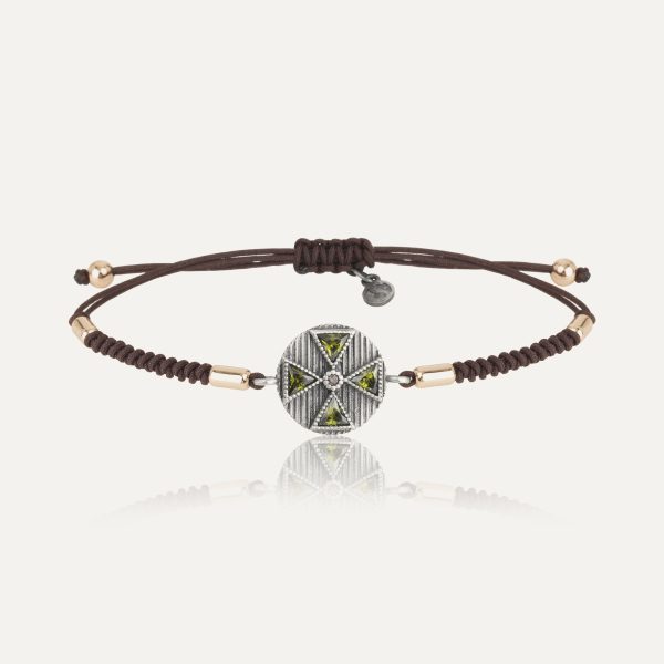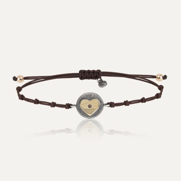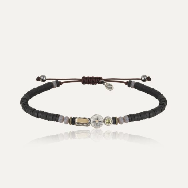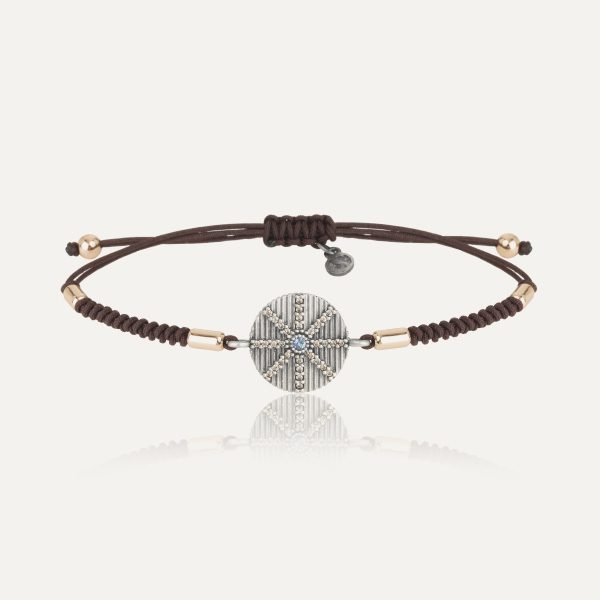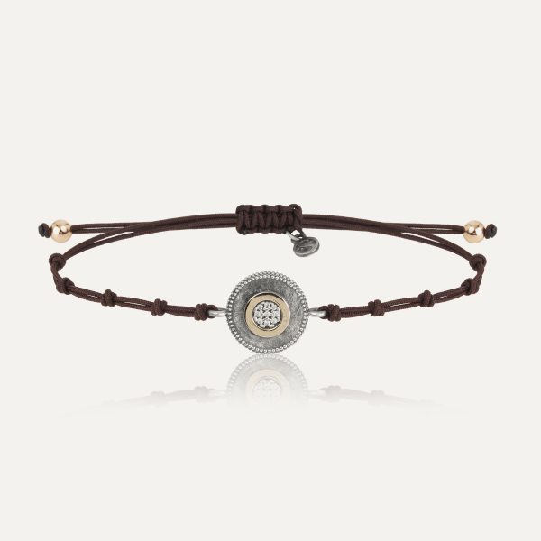 Pulsera de plata de ley 925 con acabado envejecido, oro de 9 kt, circonitas y nylon.