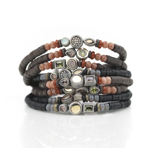 Pulsera de plata de ley 925 con oro de 9 kt, cuentas de cristal, hematites, caucho y nylon.