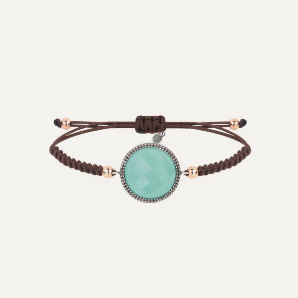 Pulsera de plata de ley 925 con acabado envejecido, calcedonia, circonitas y nylon.