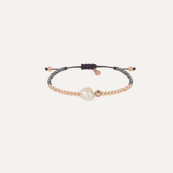 Pulsera de plata de ley 925 con perla natural, circonita y cordón de nylon trenzado.