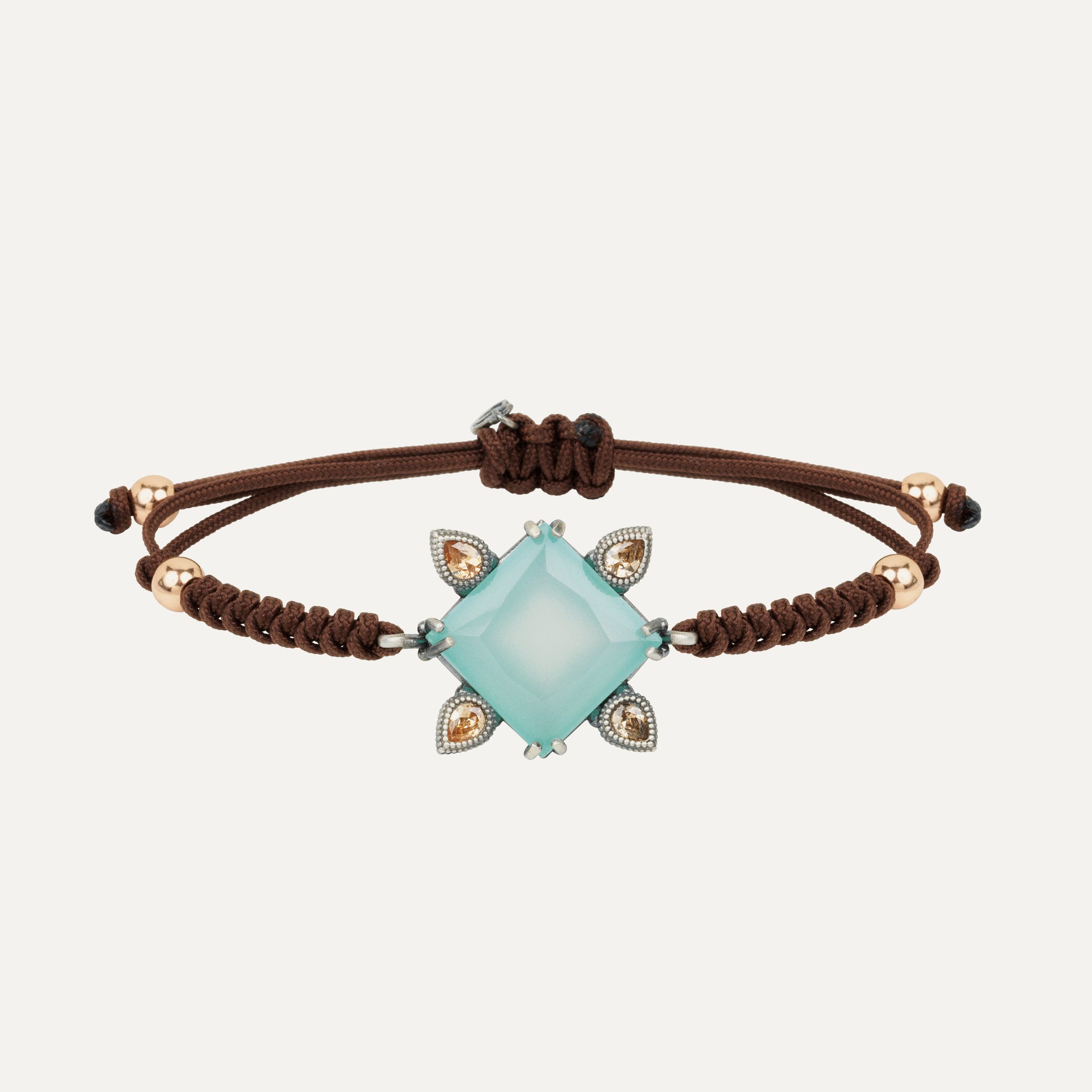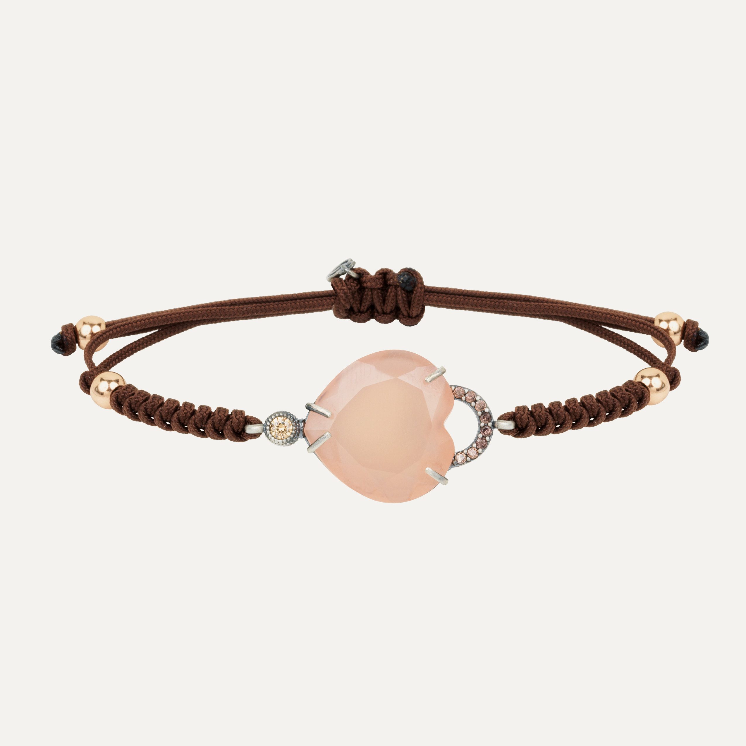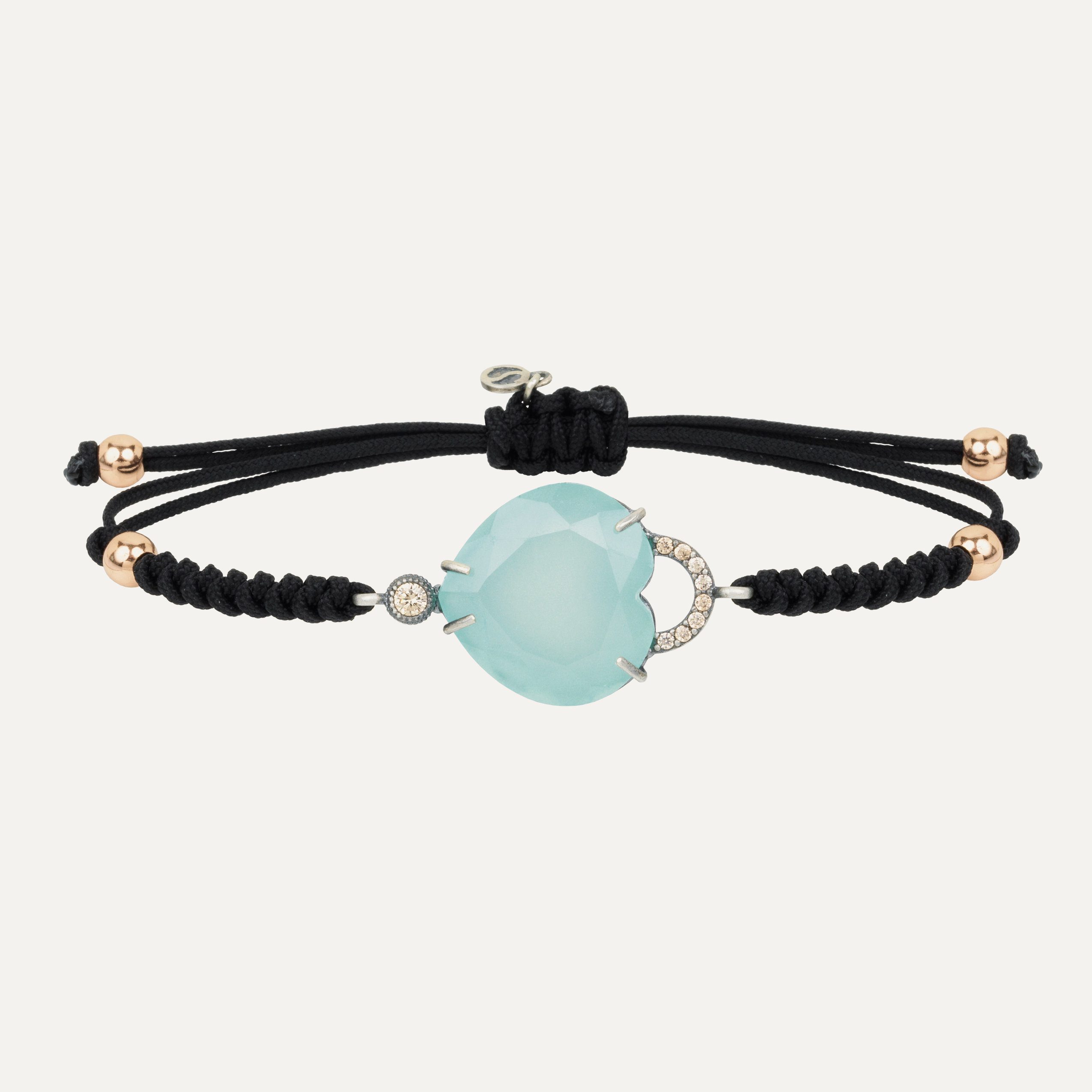 Pulsera de plata de ley, cuarzo, circonitas y nylon, en dos combinaciones a elegir.