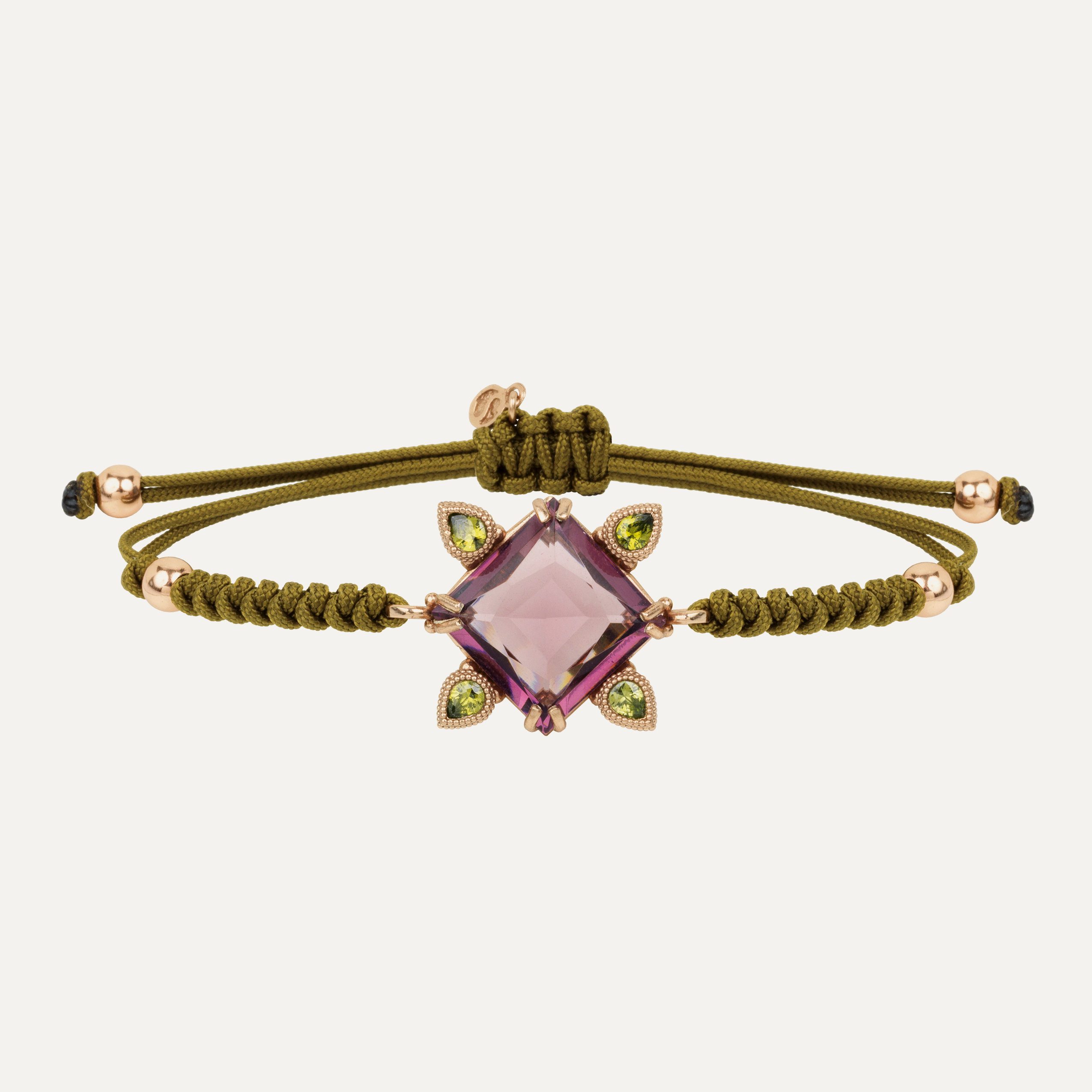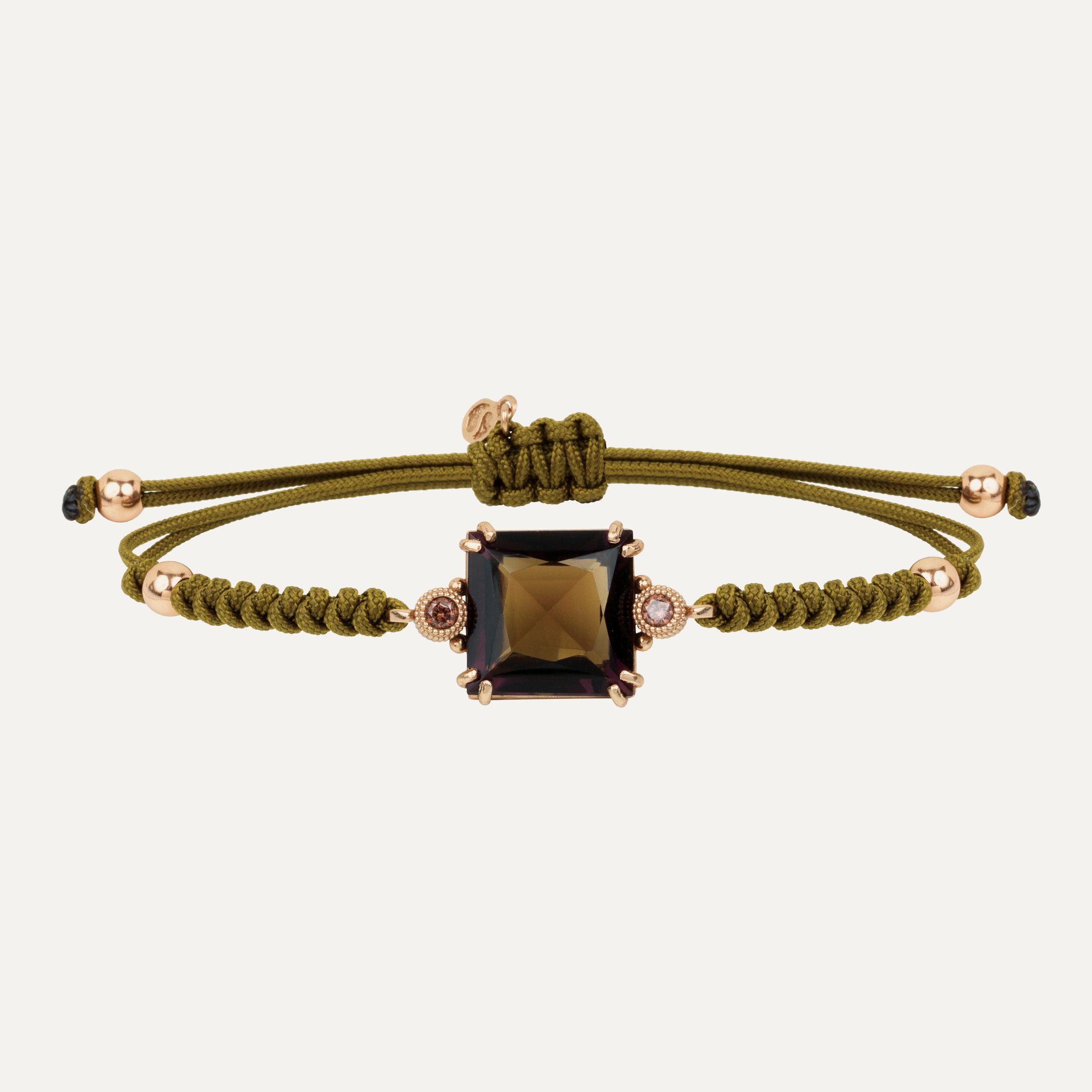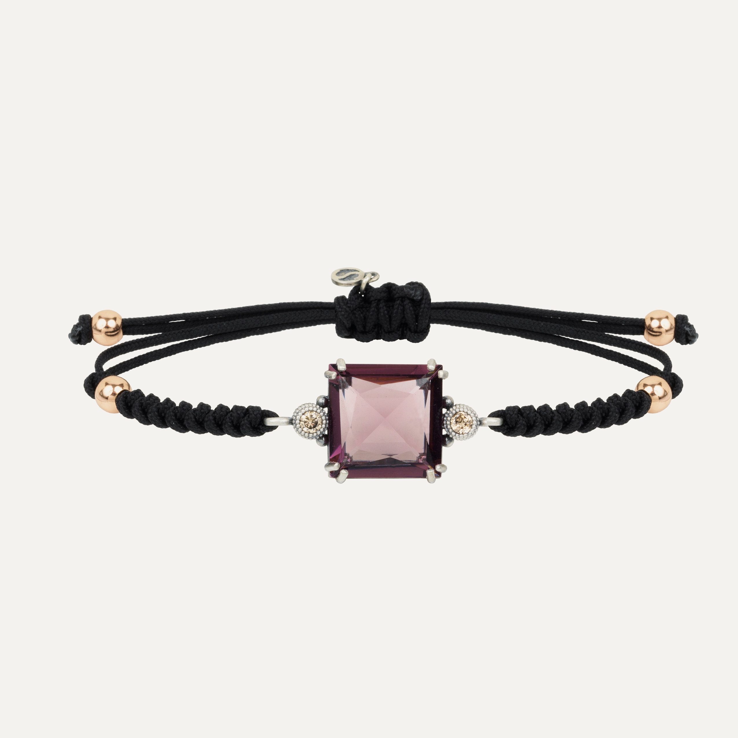 Pulsera de plata de ley, cuarzo, circonitas y nylon, en tres colores a elegir.