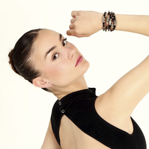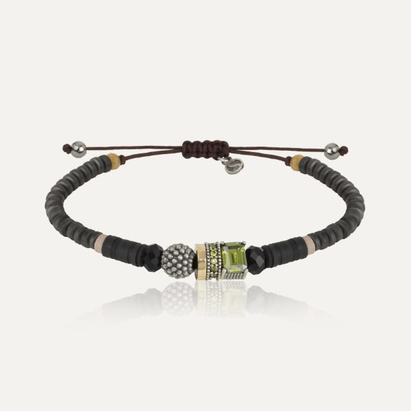 Pulsera de plata de ley 925 con oro de 9 kt, cuentas de cristal, hematites, caucho y nylon.