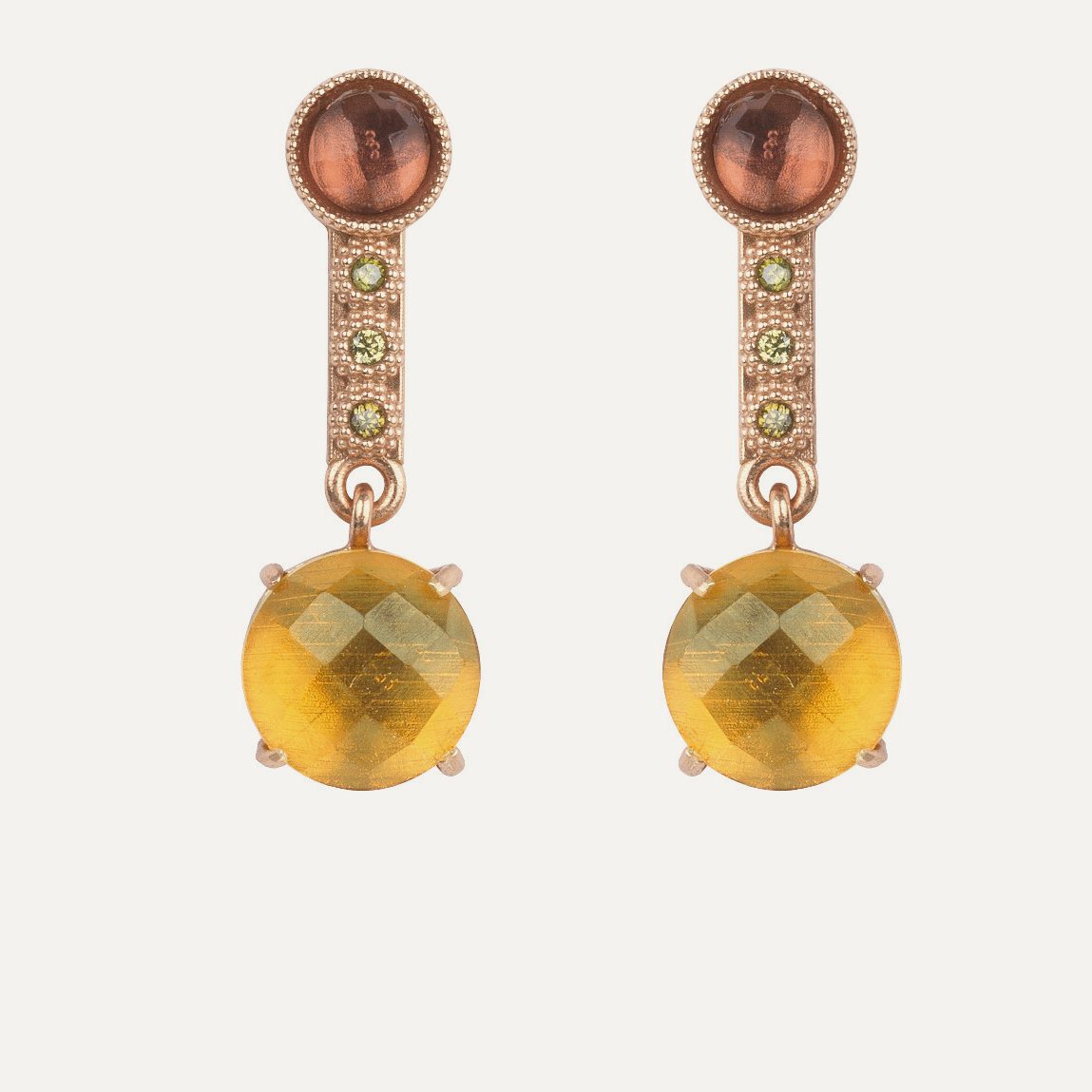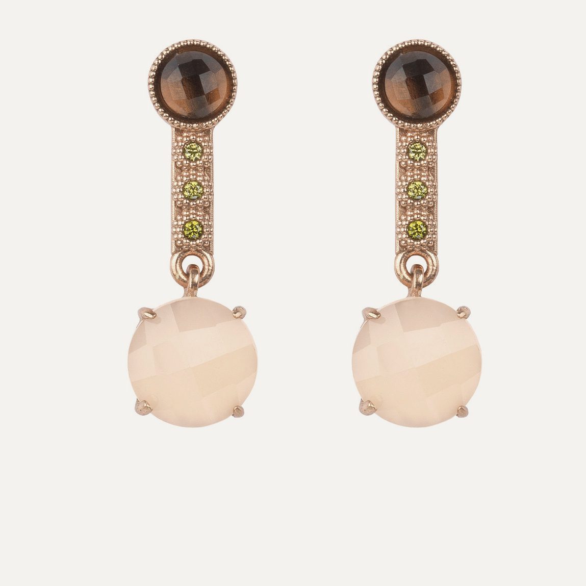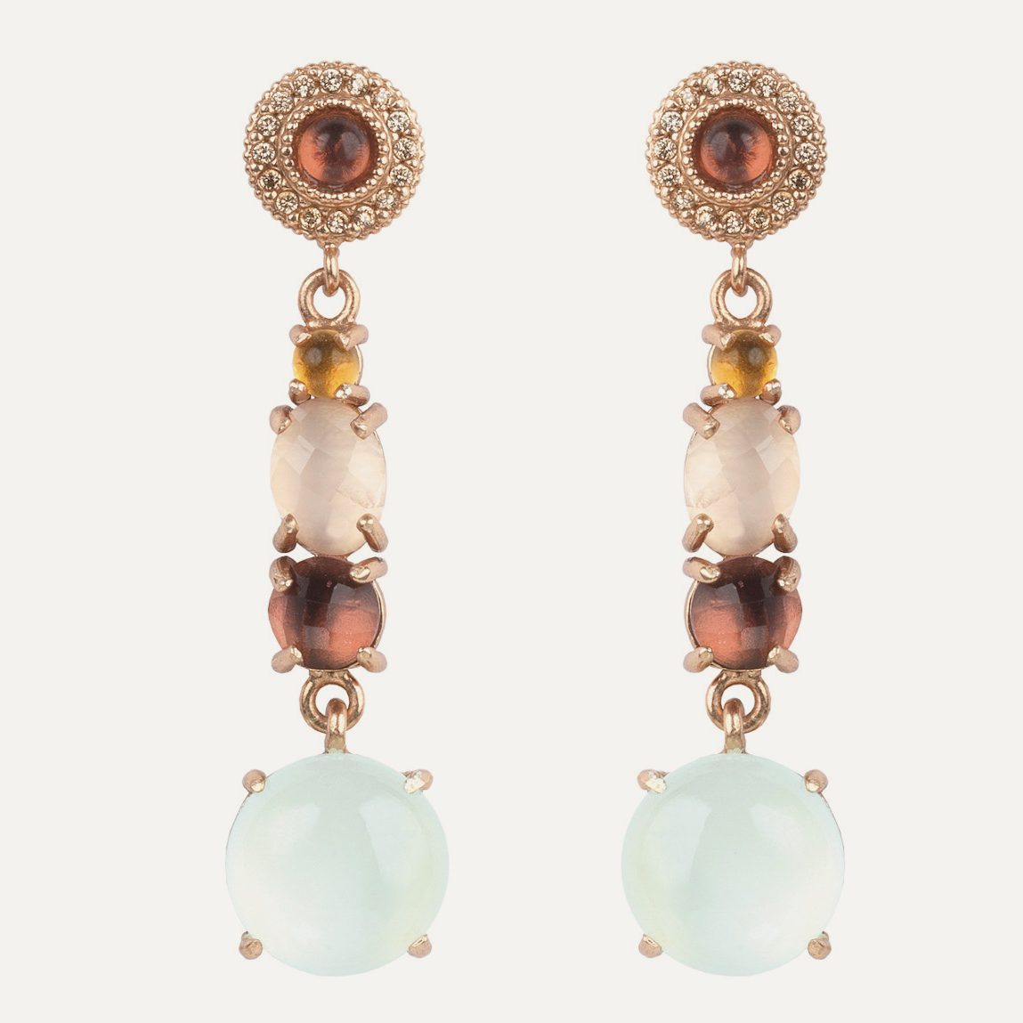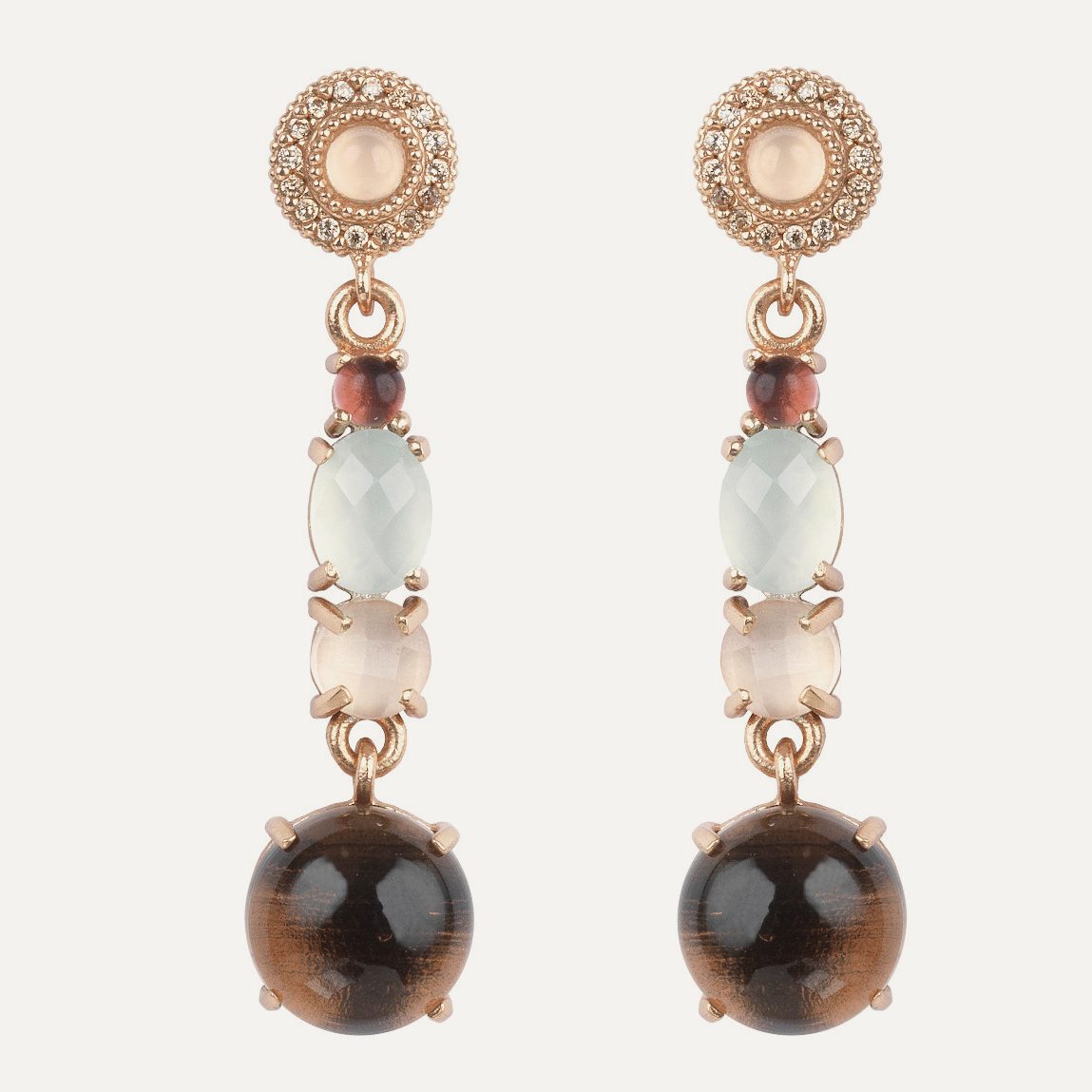 Pendientes de plata de ley 925 con baño de oro rosa de 24 kt, cuarzos y circonitas.