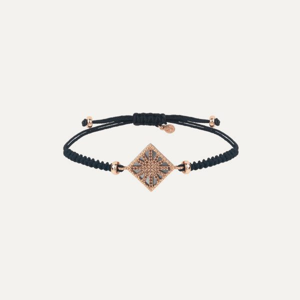 Pulsera de plata de ley 925 con baño de oro rosa de 24 kt, circonitas y nylon.