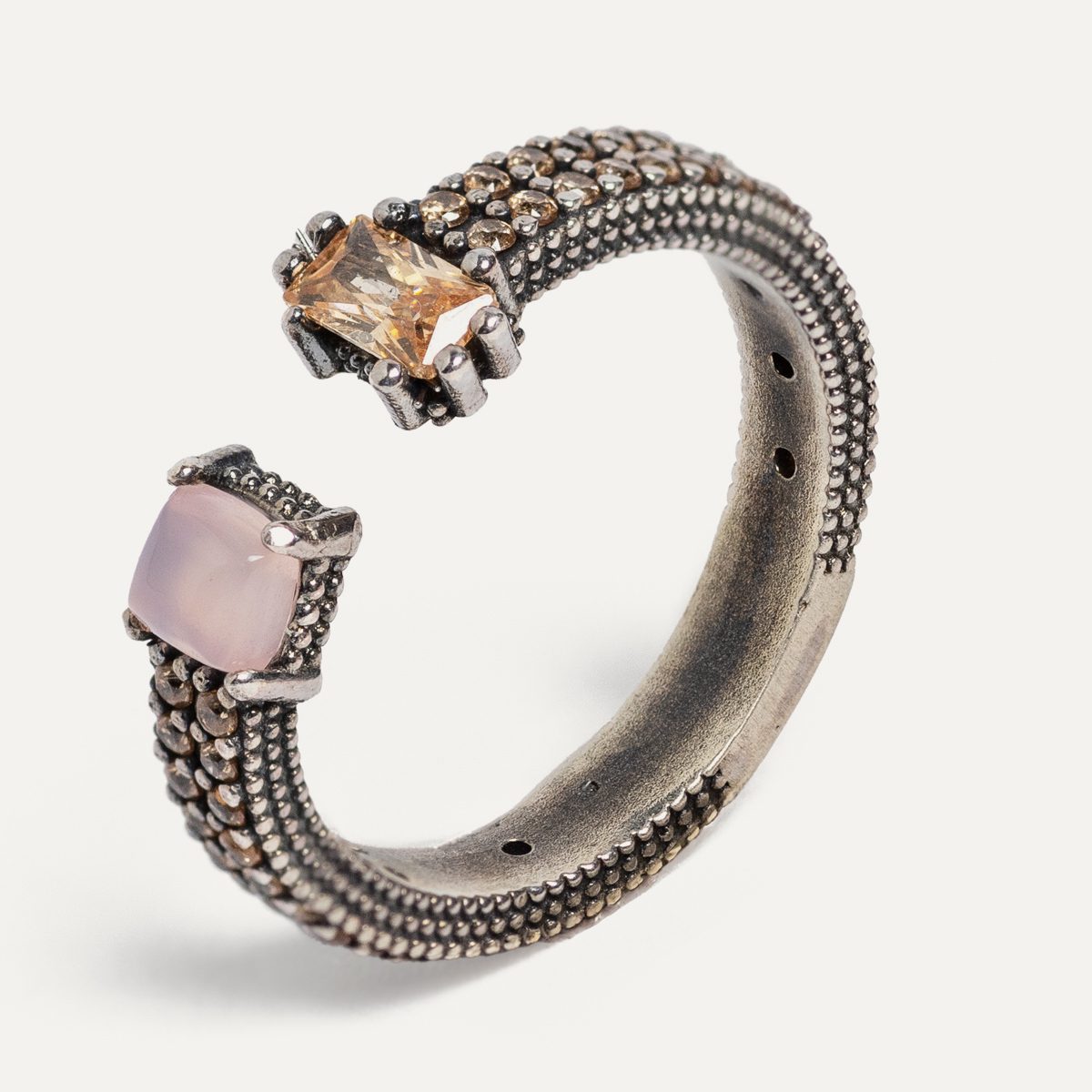 Anillo de plata de ley 925 con cuarzo y circonitas. Disponible en varios colores.