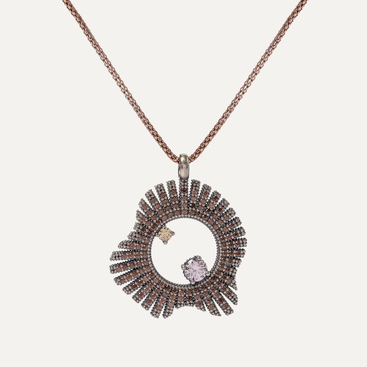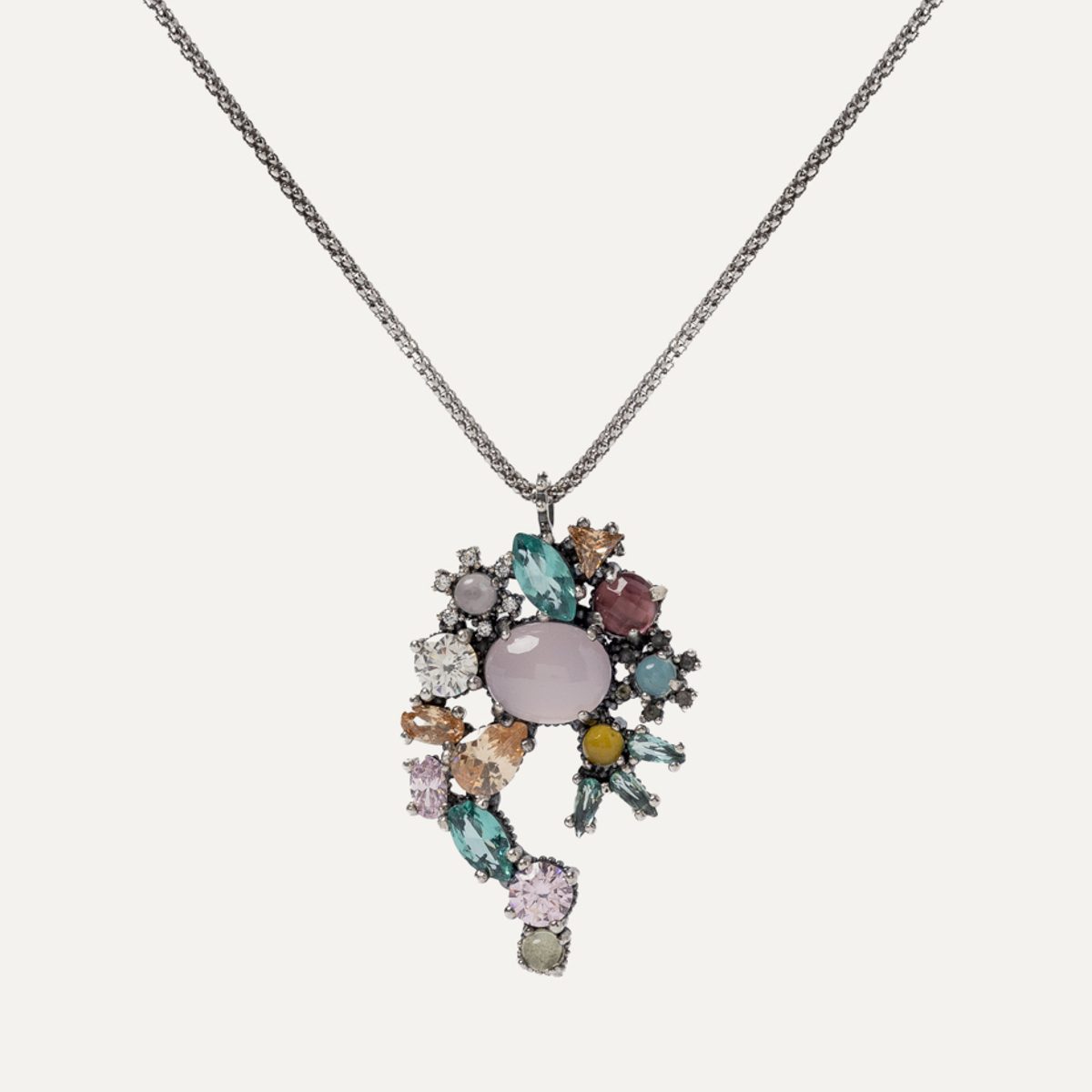 Colgante de plata de ley 925 con cuarzo rosa, turmalina rosa, citrino, cuarzo gris y circonitas.