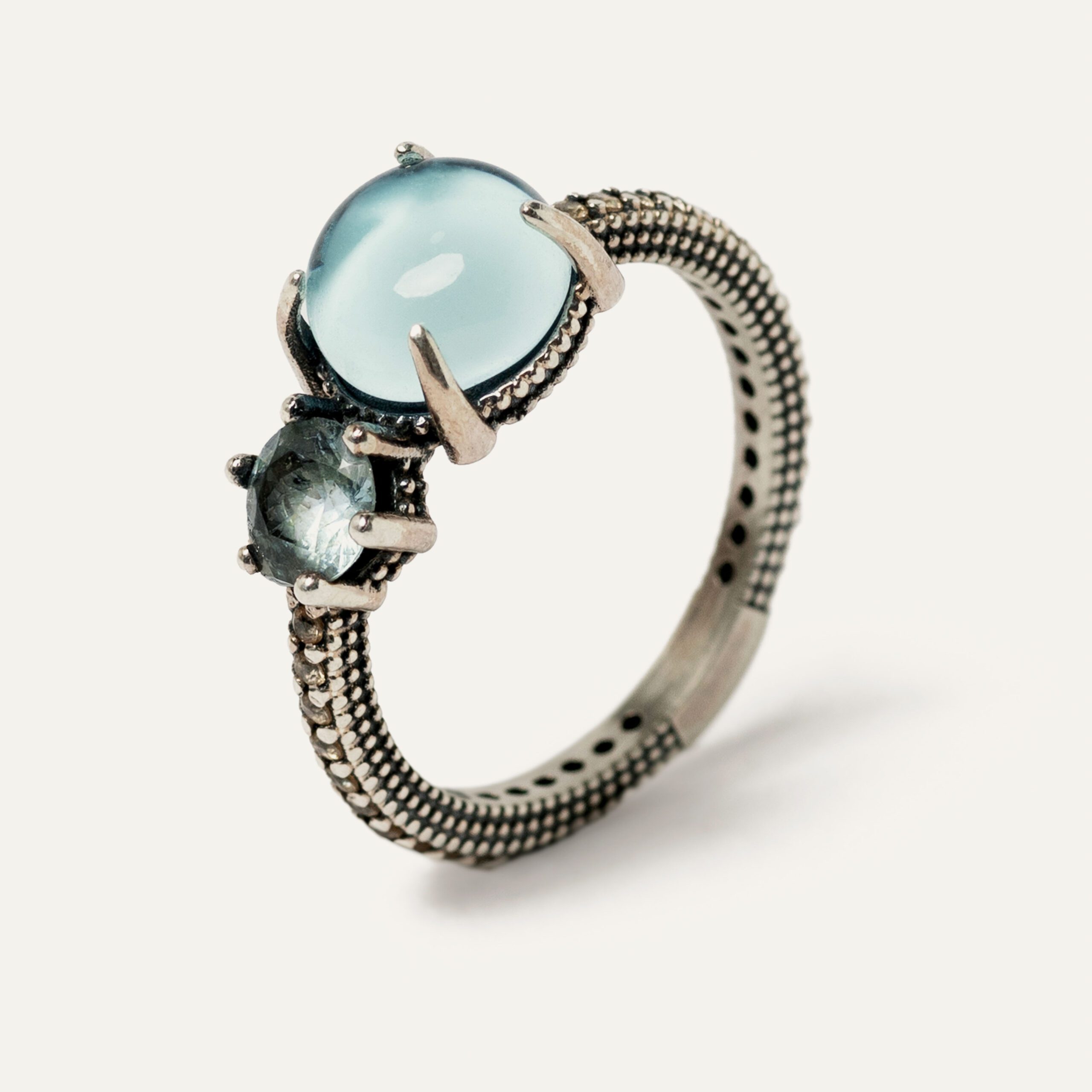 Anillo de plata de ley 925 con cuarzo y circonitas. Disponible en varios colores.