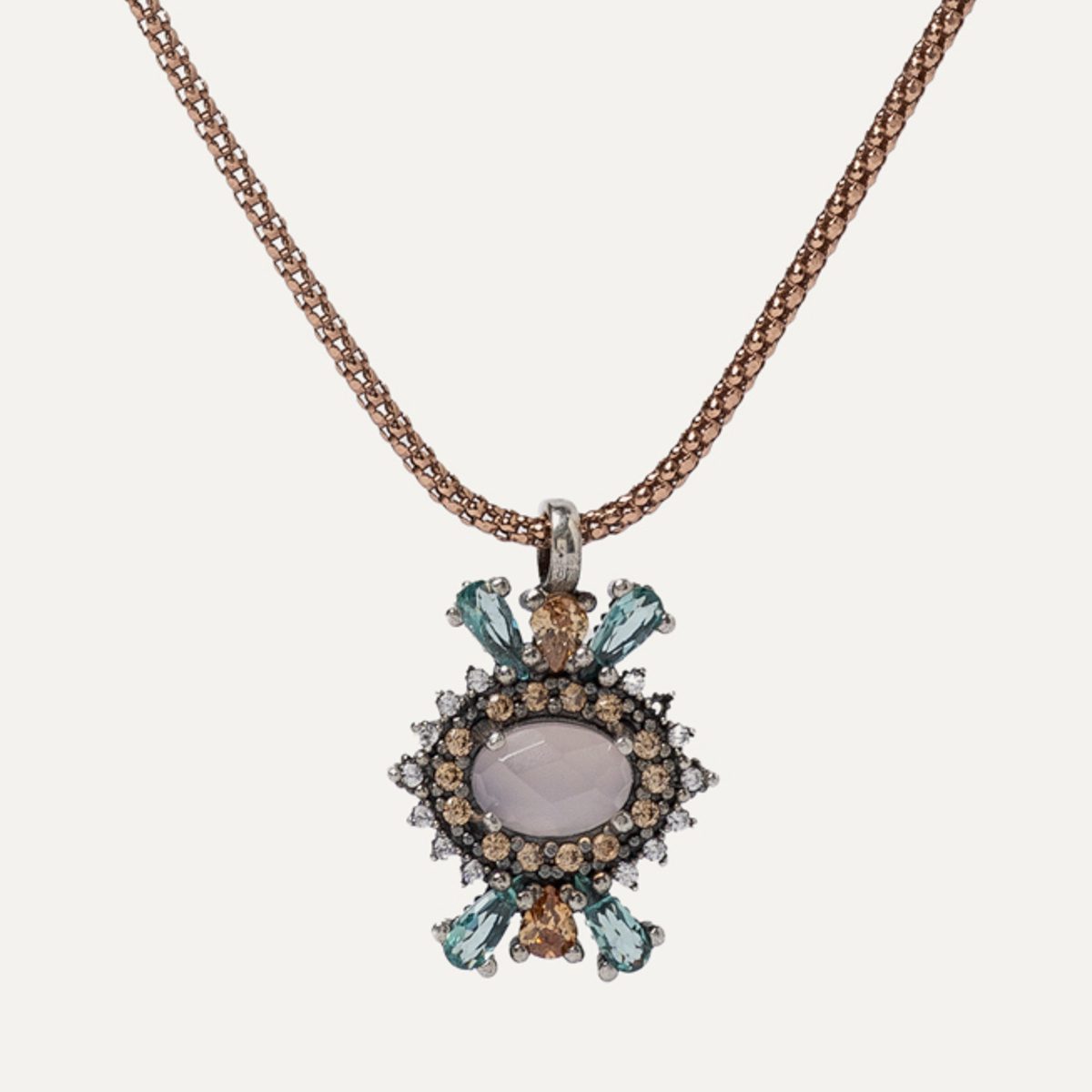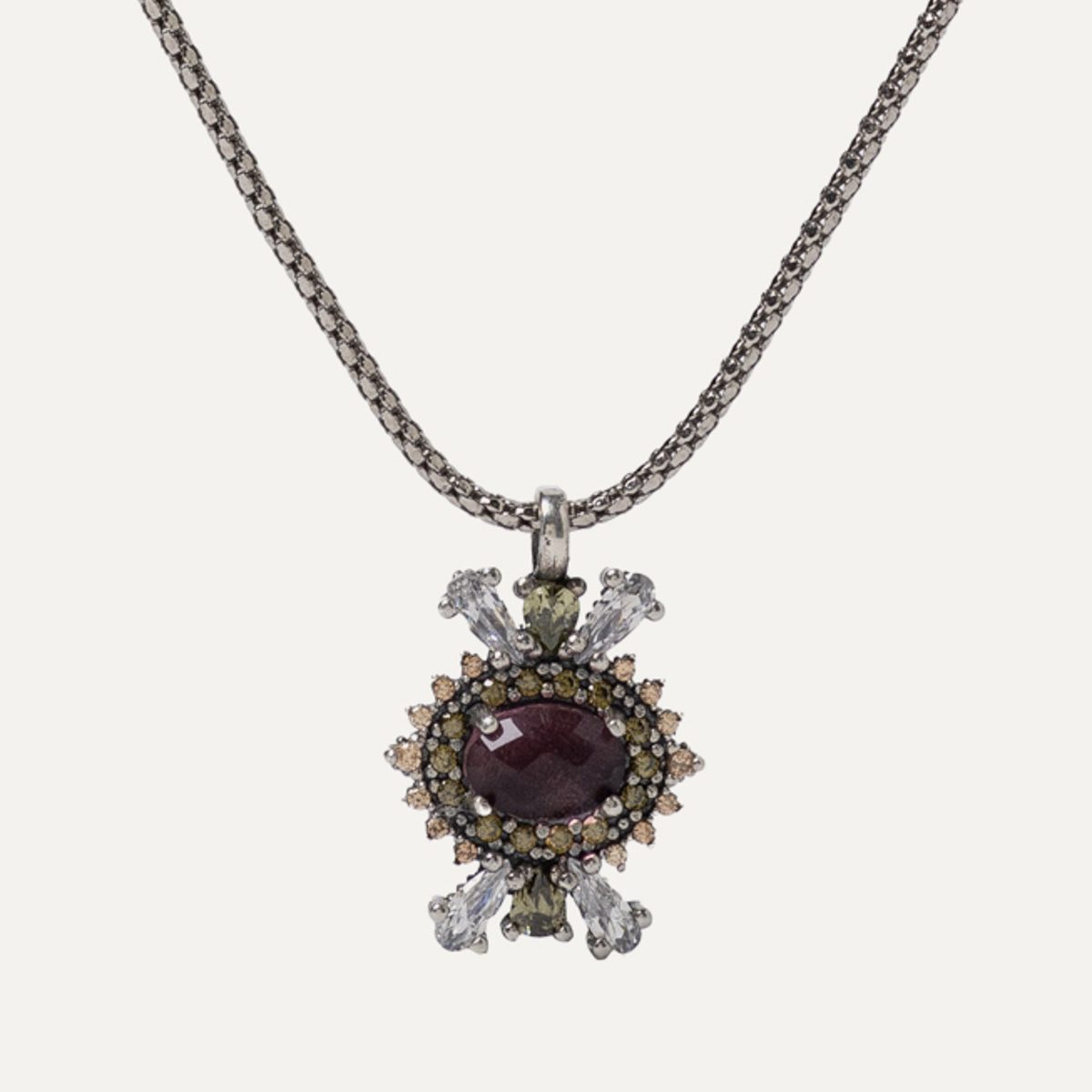 Colgante de plata de ley 925, con piedra central y circonitas. Disponible en varios colores.