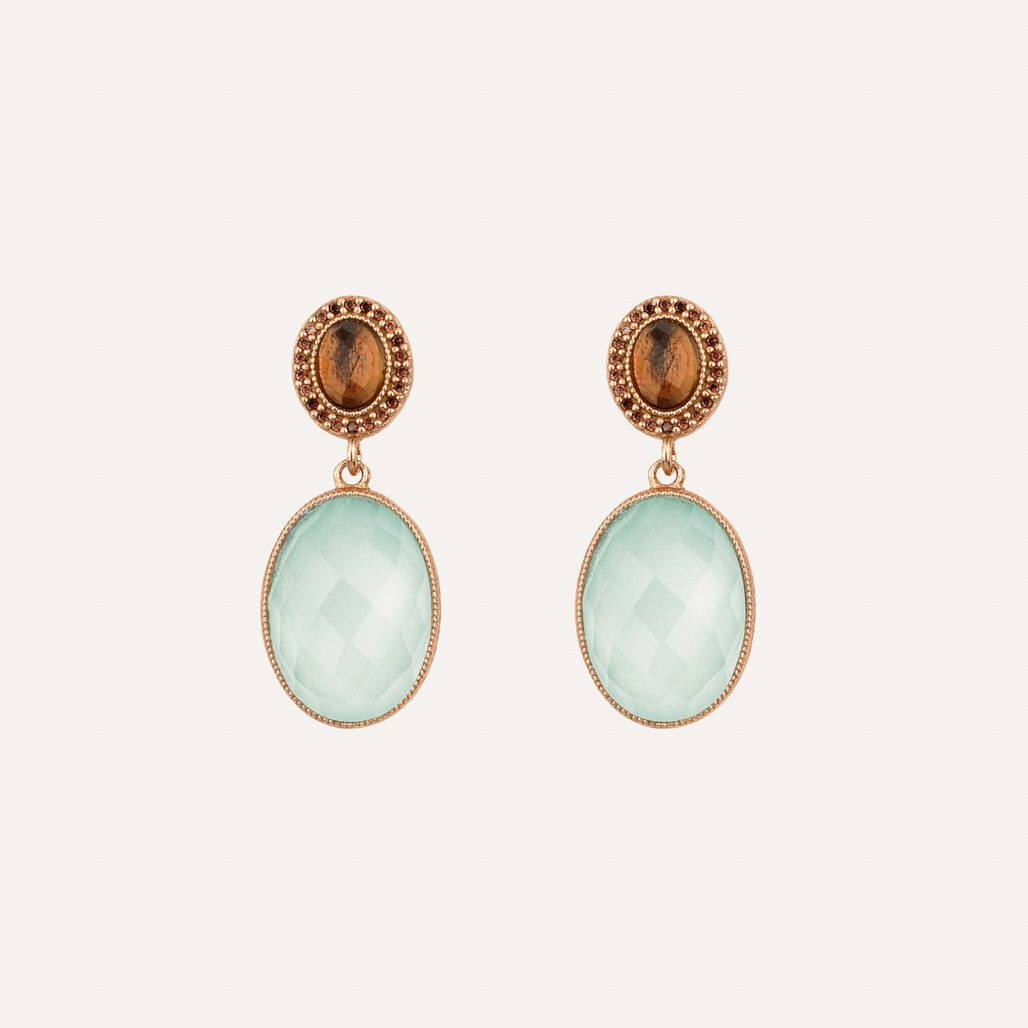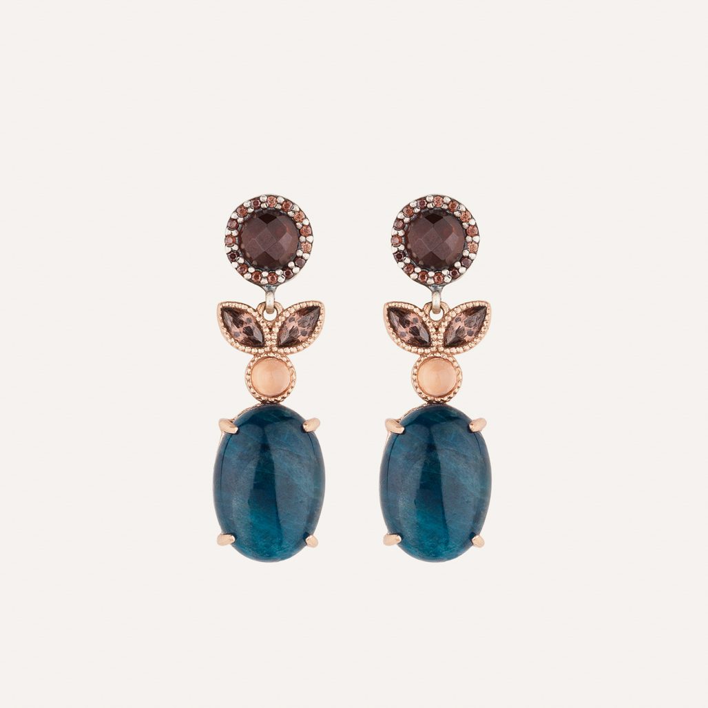 Colgante de plata de ley, cuarzo en símil ópalo azul, ágatas, hematites, circonitas y nylon.