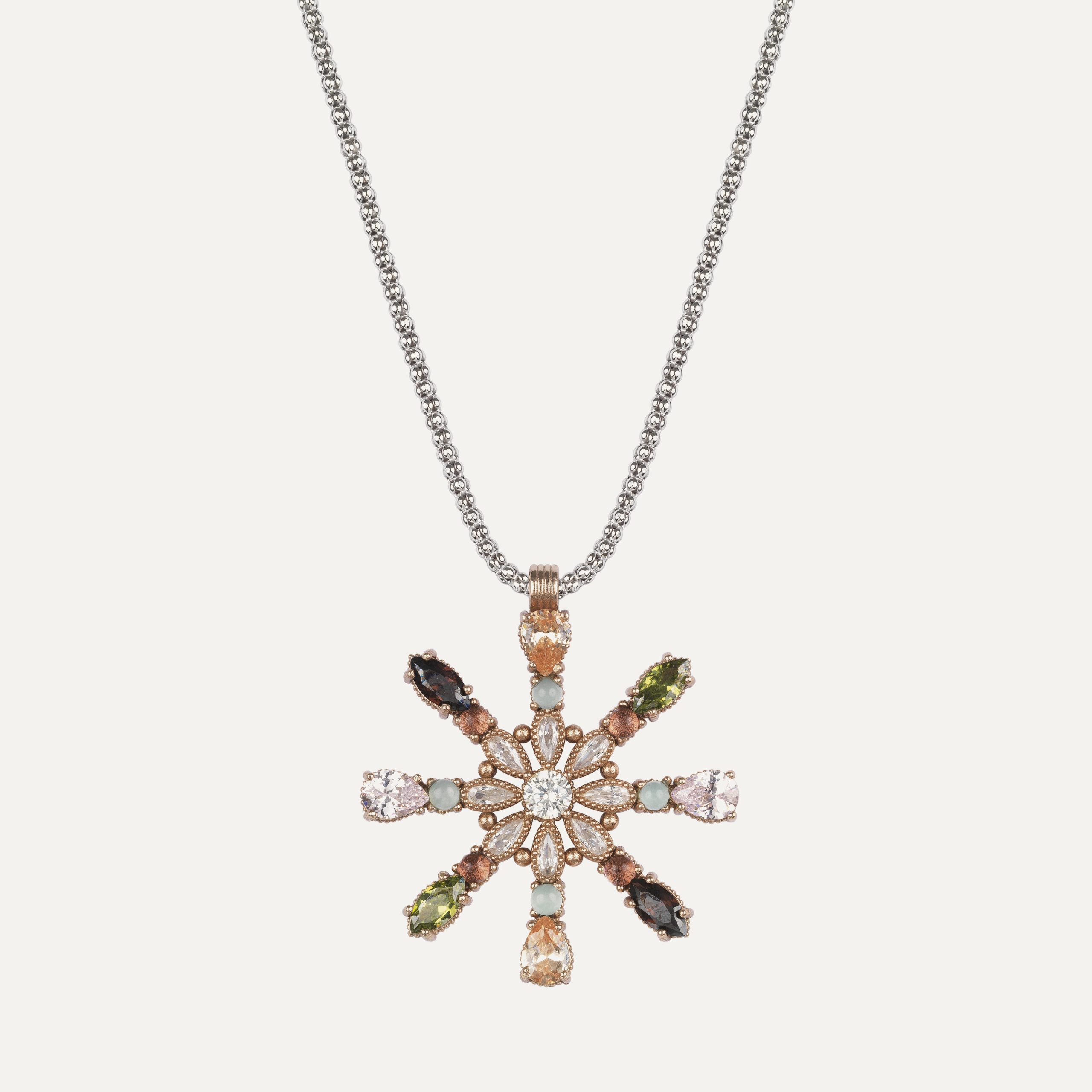 En este caso se trata de un elegante diseño fabricado en plata de ley 925 con baño de oro rosa de 24 kt, miden aproximadamente 4,3 cm de largo y lo componen un botón circular con un cabujón liso en turmalina rosa de 3 mm rodeado de plata de ley 925 y circonitas, y una parte móvil con una circonita talla brillante en color vino en su parte superior, una barra de circonitas talla brillante en color verde peridoto, y rematados por un cuarzo fumé facetado en talla oval en su parte inferior.