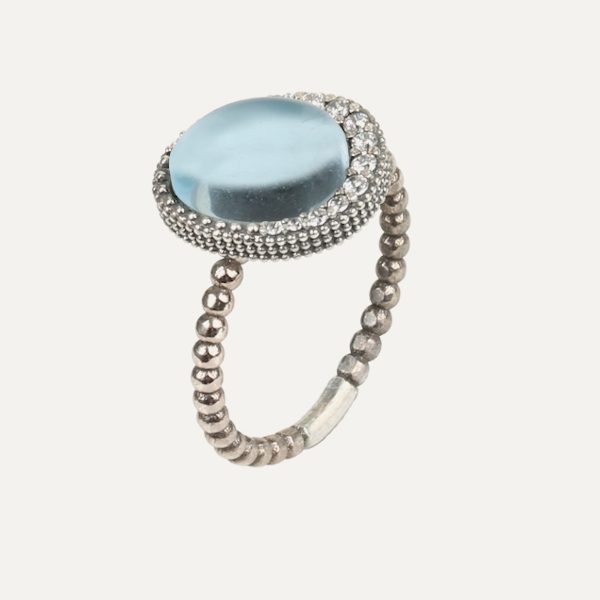 Original colgante en plata de ley hecho en nylon marrón ajustable mediante un nudo de macramé. El centro es una pieza de plata de ley con circonitas clavadas a mano rodeando un cabujón central en forma de gota en cuarzo liso en tres combinaciones de colores. Lo rodean unas bolitas de plata de ley bañadas en oro rosa. Ágatas y cuentas de cristal completan el conjunto.