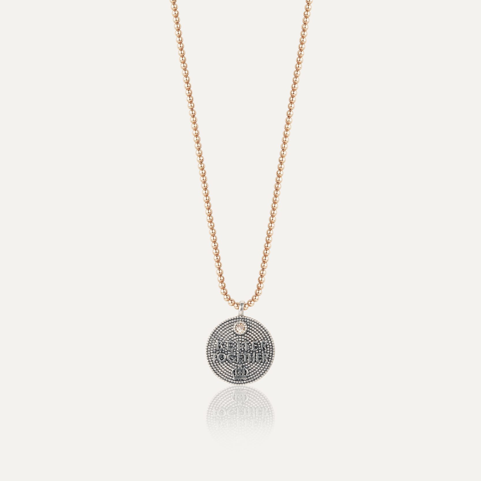 Collares con medalla de plata de ley 925 grabada con mensajes emotivos y detalle de circonita de color. Se presentan con cadena o cordón con baño de...